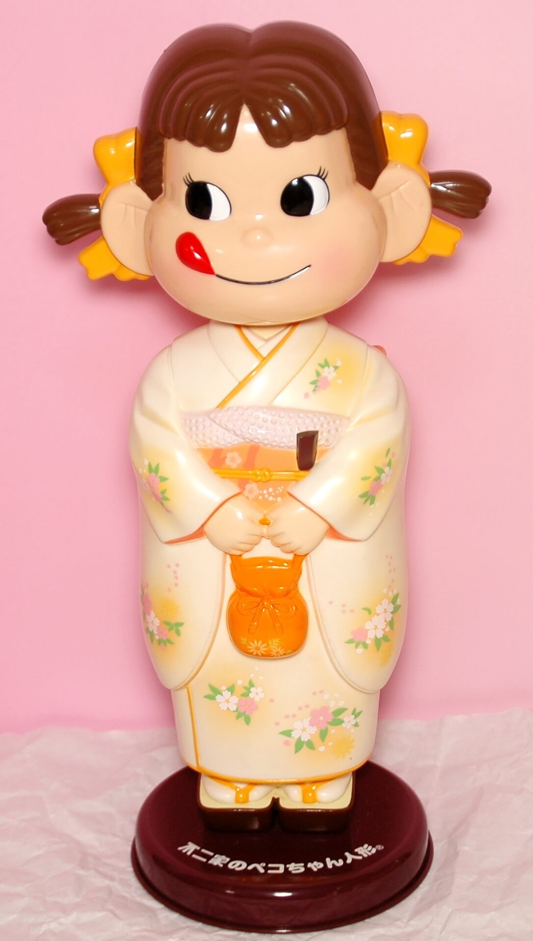 着物首ふりペコちゃん人形 山吹色 オレンジ